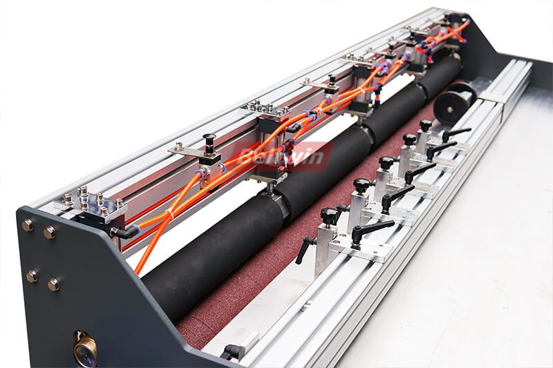- Pneumatischer Rollenspanner, um die Spulen straff zu halten.