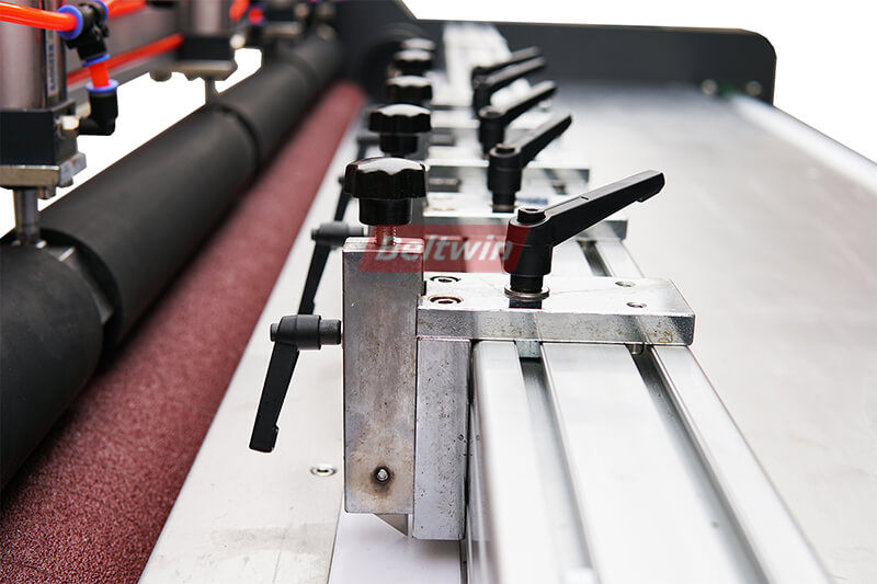 - Fixklinge mit Messer auf beweglicher Werkzeugleiste montiert. Unser Standard sind 5 Messer (wenn Sie mehr benötigen, können wir auch liefern). Die Messer sind in ihrer Schnittposition manuell einstellbar.